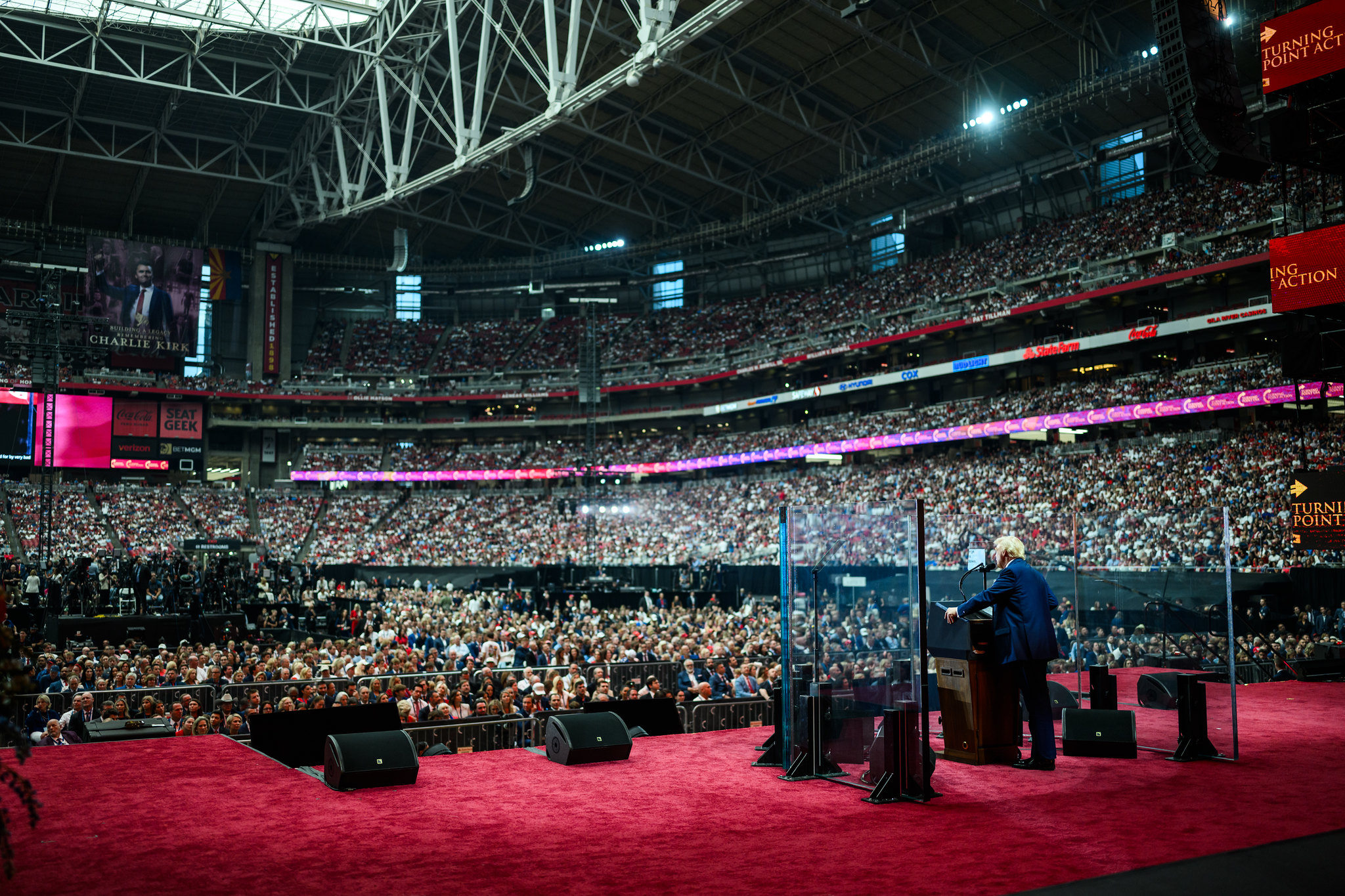 The massive event doubled as a tribute to Kirk’s lifelong focus on conservative activism and youth outreach. In line with his legacy, voter registration booths staffed by Turning Point volunteers were set up inside the stadium, drawing significant participation.